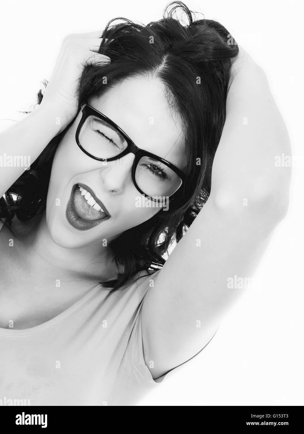 Ritratto In Bianco E Nero Di Un Frustrato Arrabbiato Business Donna Tirando I Suoi Capelli Fuori Foto Stock Alamy