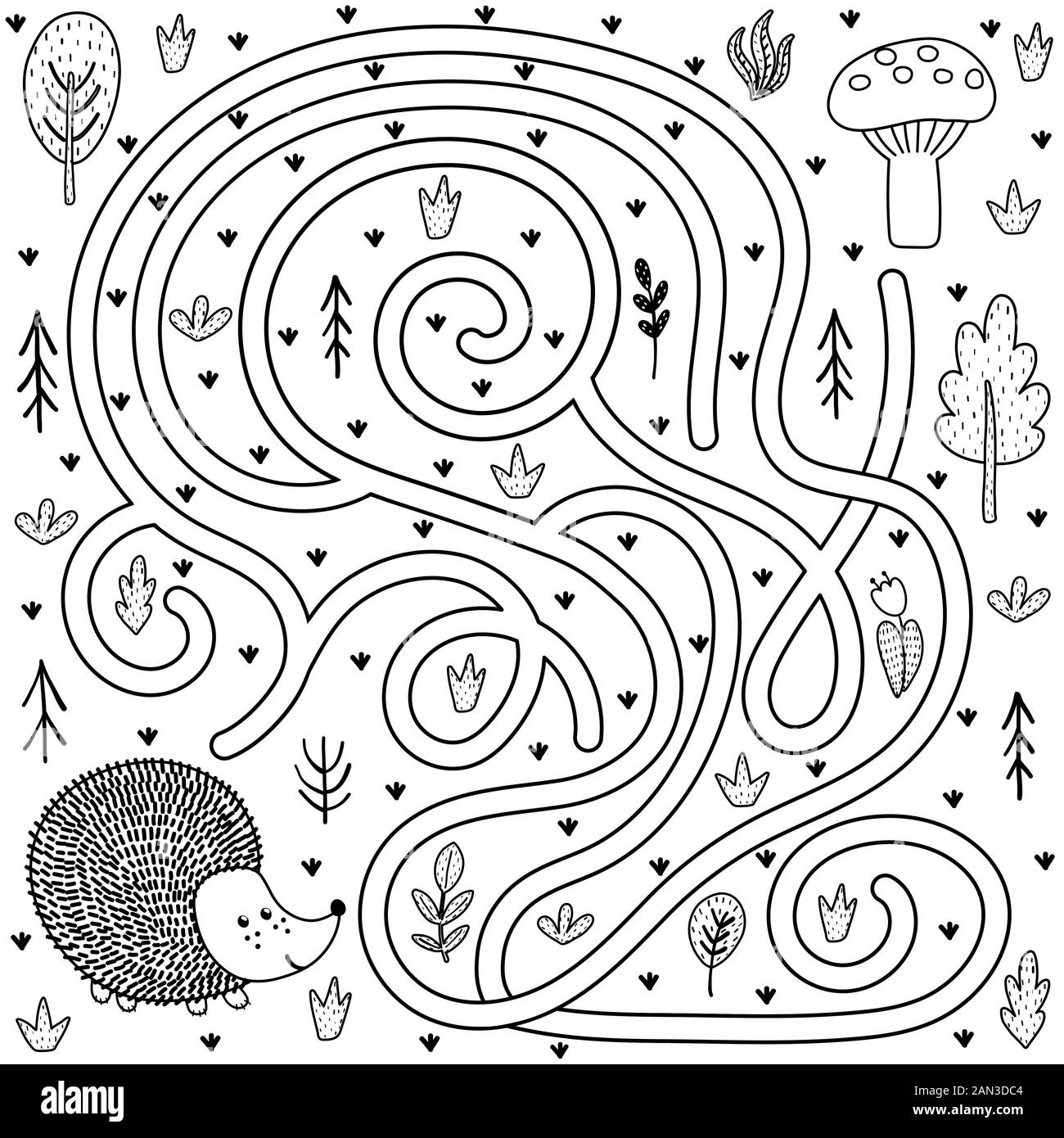 Gioco Labirinto Bianco E Nero Per Bambini Aiutare Il Riccio Trovare La Strada Per Il Fungo Immagine E Vettoriale Alamy