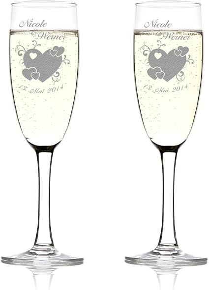 Set Di 2 Bicchieri Da Spumante Con Incisione Nome E Data Idea Regalo Per Champagne Prosecco E Spumante Motivo Grande Cuore Con Piccoli Cuori E Regali Amazon It Casa E Cucina