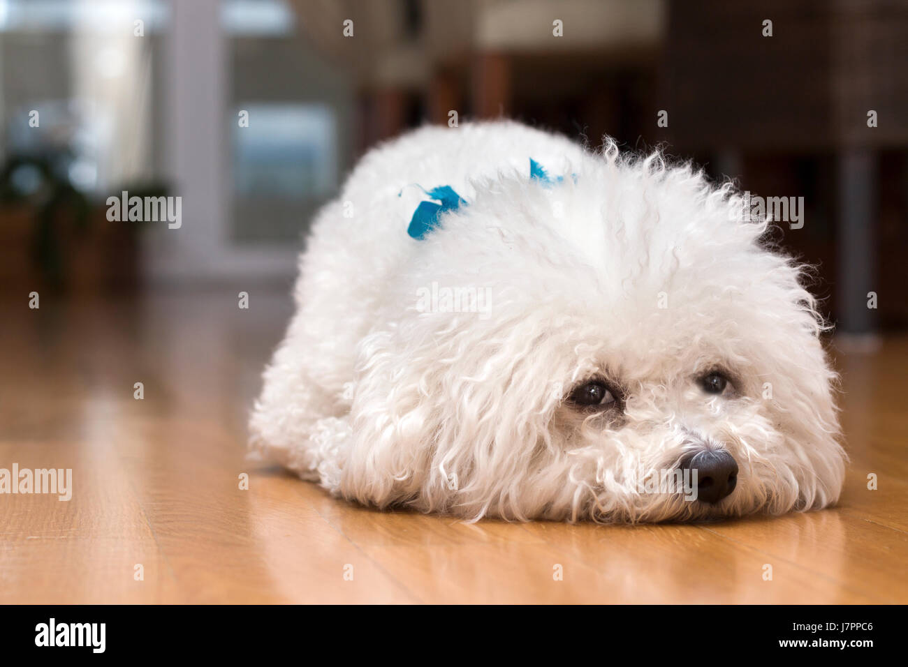 Cane Bichon Frise Sdraiato Sul Pavimento Della Sua Casa Da Soli Aspettando Il Suo Proprietario Foto Stock Alamy