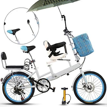 Axdwfd Bici Per Bambini 20 Pollici Bicicletta Madre E Bambino Tandem Pieghevole Freno A Disco Di Spostamento Cintura Di Sicurezza Recinzione Doppia Madre Pick Up Bambino Bicicletta Blu Amazon It Sport E Tempo