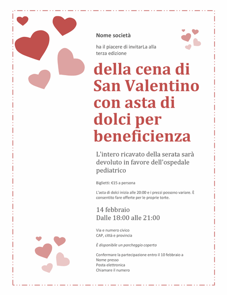 Biglietto Di Invito All Asta Di Dolci Di San Valentino Per Beneficienza