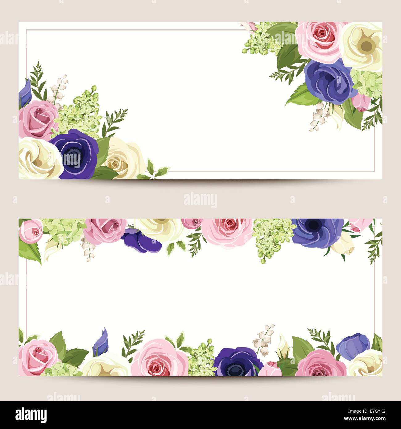 I Biglietti Di Invito Con Colorati Rose Lisianthuses Anemone E Fiori Immagine E Vettoriale Alamy