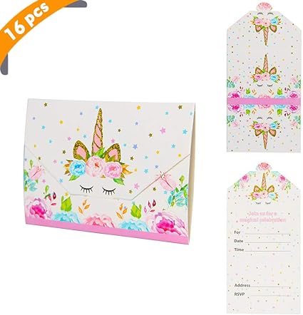 Yiran Set Di 16 Biglietti Di Invito Unicorno Per Feste A Tema O Compleanni Per Bambini Amazon It Casa E Cucina