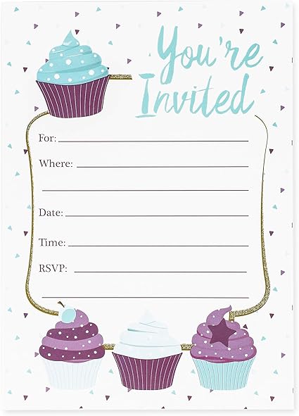 Cupcake Invito Cards 24 Biglietti D Invito Con Buste Per Bambini Festa Di Compleanno E Baby Shower 12 7 X 17 8 Cm Cartoline Di Amazon It Casa E Cucina