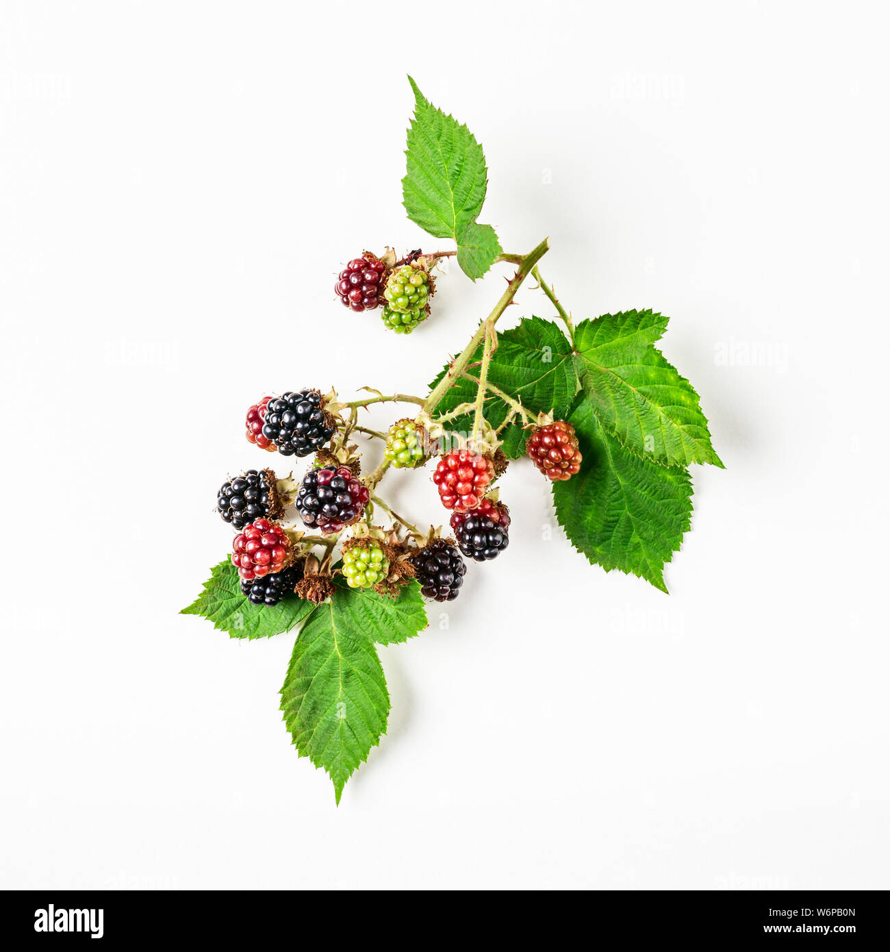 Blackberries Ripening On Bramble Branch Stock Photo Alamy
