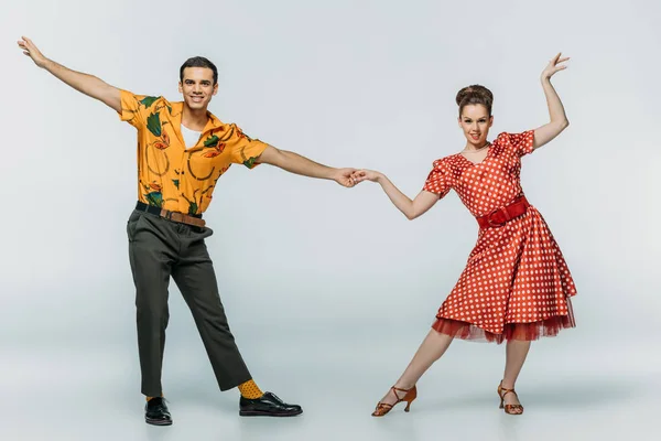 Immagini Stock Smiling Dancers Looking At Camera While Dancing Boogie Woogie On Pink Background Image 137561536