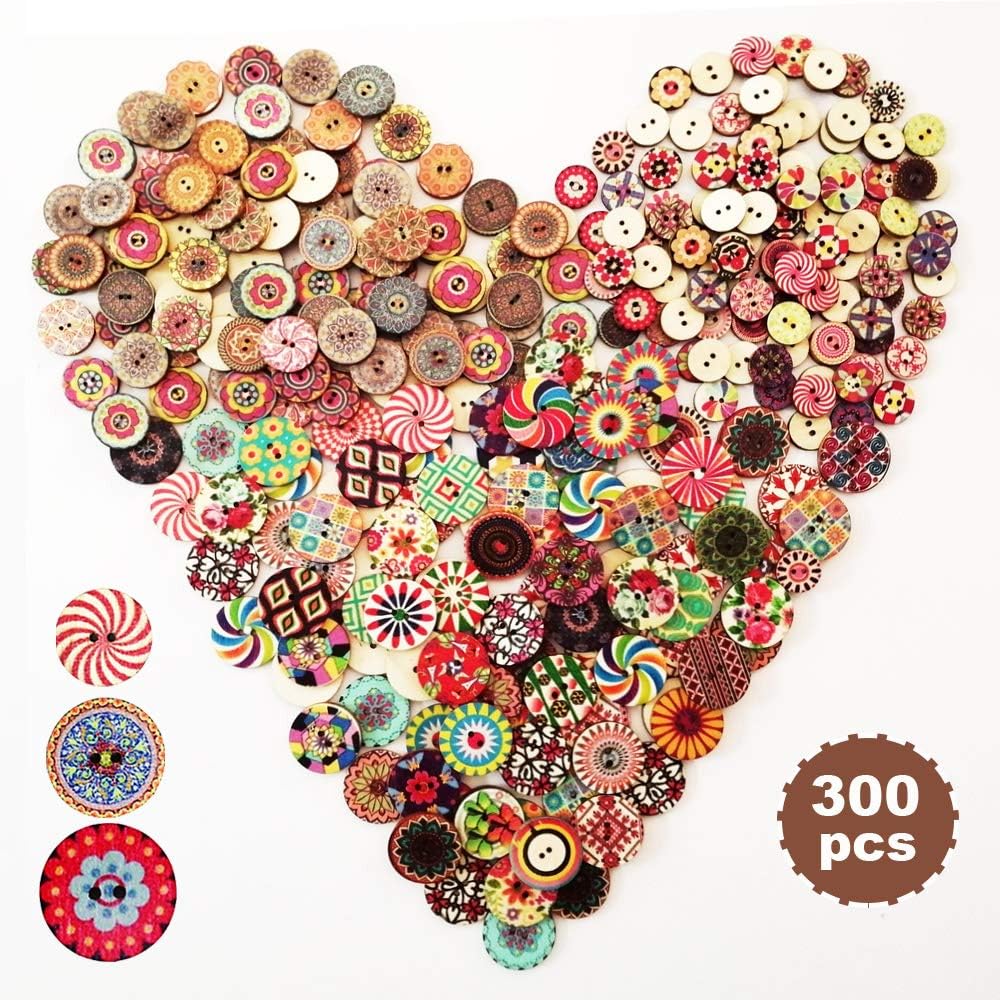 200 Pz Bottoni Colorati Decorativi In Legno Stampa Misti Assortiti Floreale Per Cucito Fai Da Te Giochi In Legno
