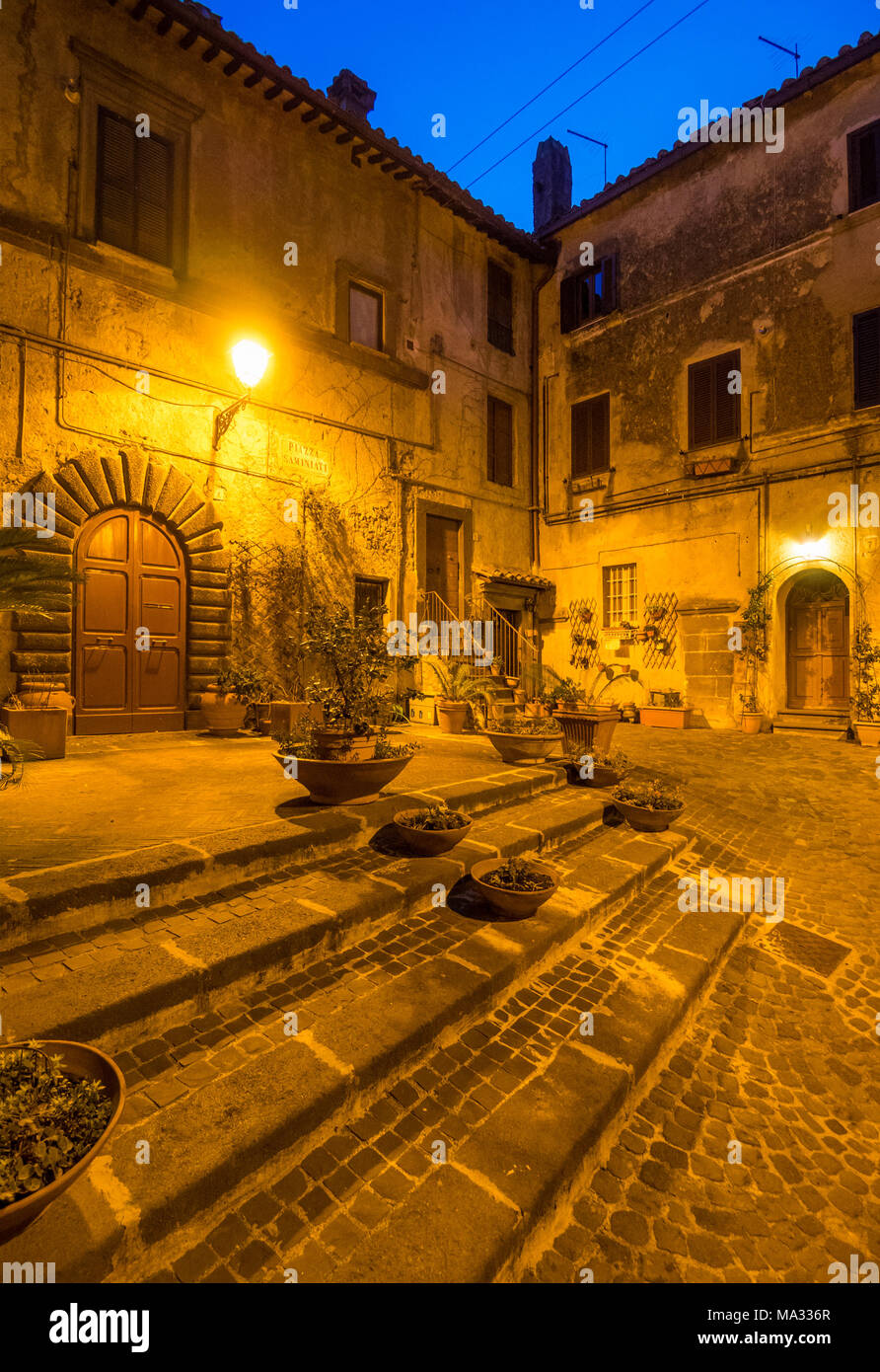 Bracciano Italy The Medieval Historic Center Of The Town In Province Of Rome Famous For His Castle And The Lake Here In The Blue Hour Stock Photo Alamy