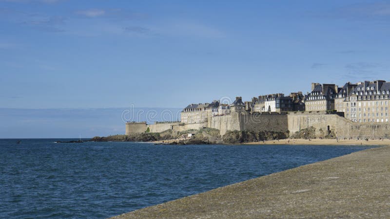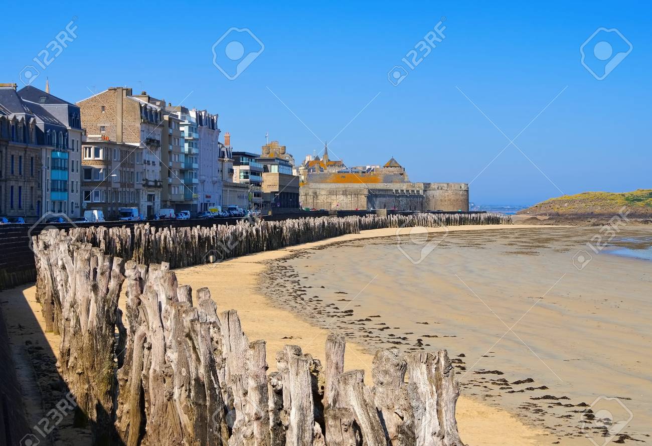 Immagini Stock Citta Murata Della Spiaggia Di Saint Malo In Bretagna Francia Image 84692957