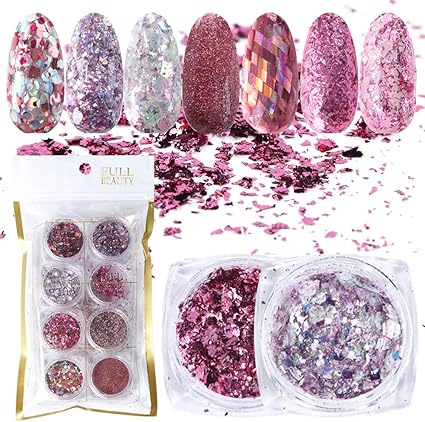 Wlkk 8pcs Glitter Per Unghie Paillette In Alluminio Oro Rosa Con Scaglie Di Brillantini Per Unghie Brillanti In Polvere Per Smalto Gel Per Unghie Paillette Mix Decorazione Manicure Amazon It Casa E Cucina