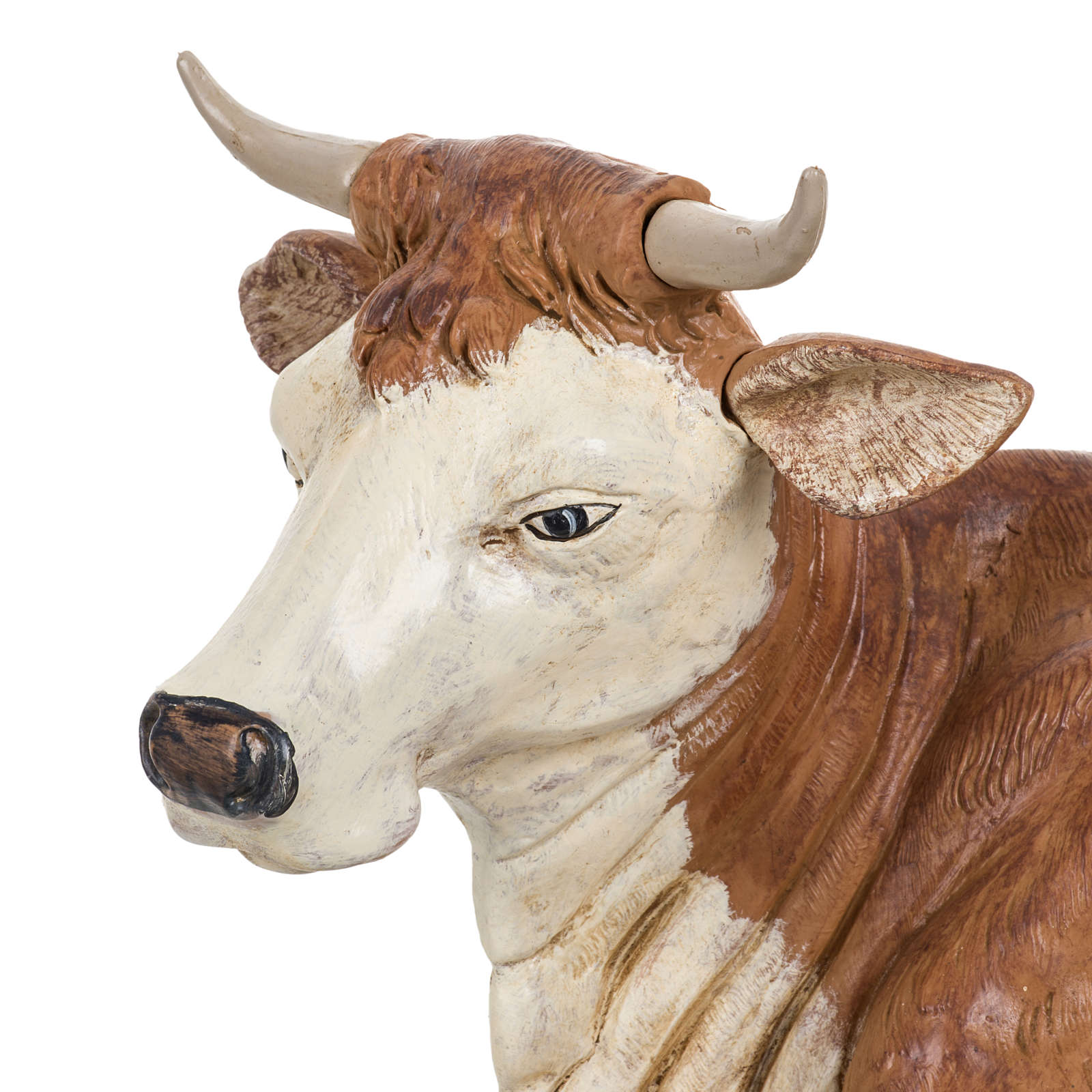Statua Bue In Resina Dipinta A Mano Per Presepe Cm 52