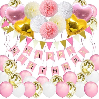Mmtx Bandiera Di Compleanno Per Ragazze Vston Palloncini Buon Compleanno Rosa Decorazione Del Partito Per Bambini Donne Palloncini Laminati A Forma Di Palloncino In Lattice Pom Pon Fiori 42pcs Amazon It Elettronica