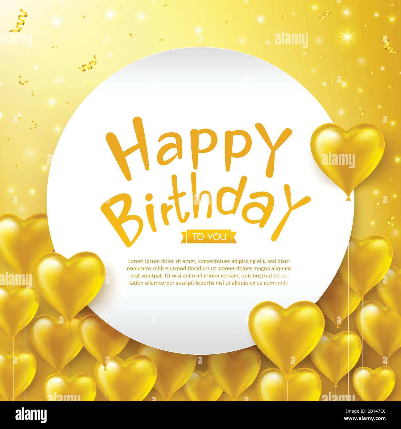 Calligraphy Buon Testo Di Compleanno Con 3d Realistico Cuore Dorato Palloncino Stella E Nastro Su Sfondo Giallo Modello Per Carta Di Invito E Partito C Immagine E Vettoriale Alamy