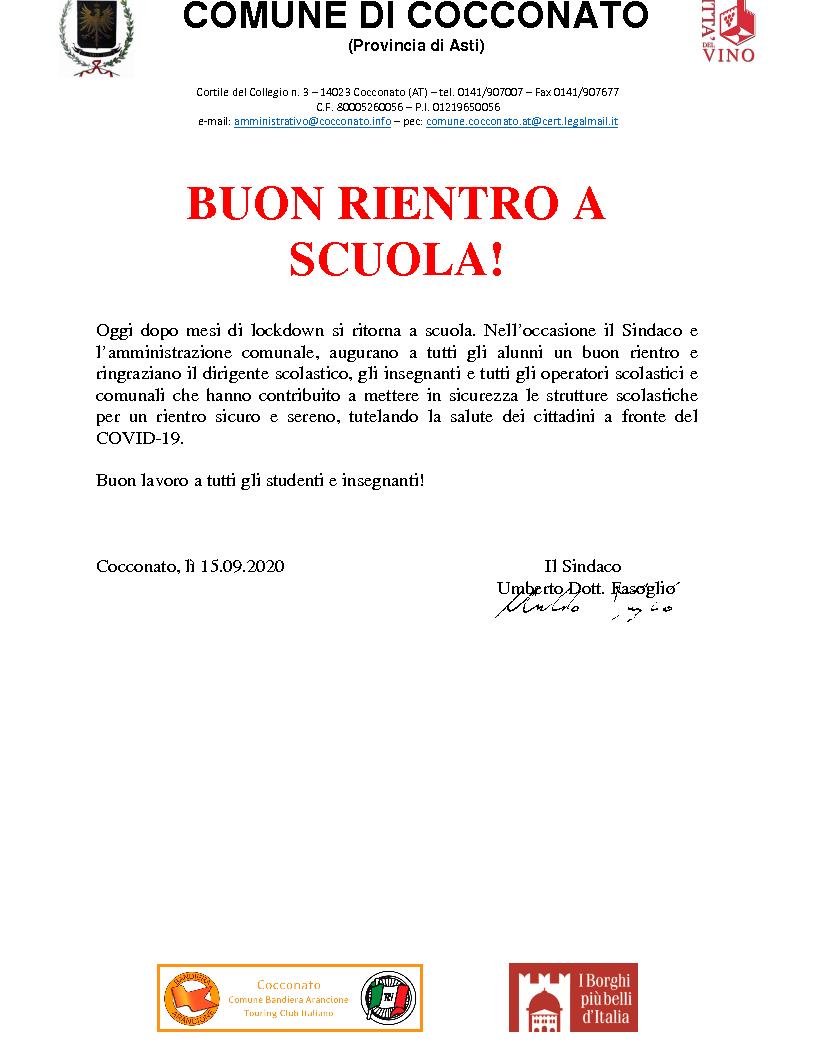 Buon Ritorno A Scuola Comune Di Castelnuovo Belbo