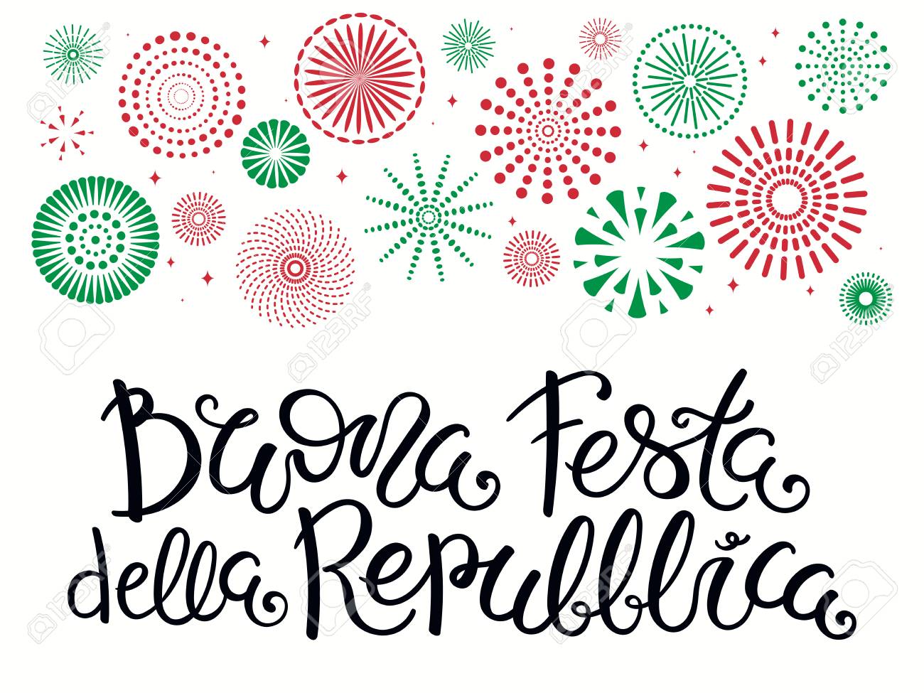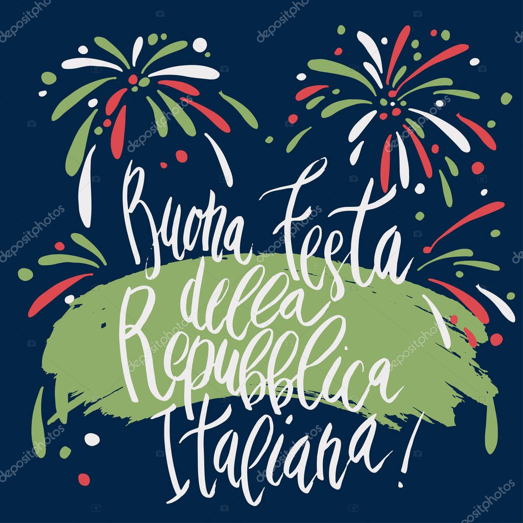 Beautiful Handwritten Brush Lettering Vector Buona Festa Della Repubblica Happy Celebration Of The Republic For Italy Independence Day 2 June Isolated On White With Fireworks Decoration Premium Vector In Adobe Illustrator