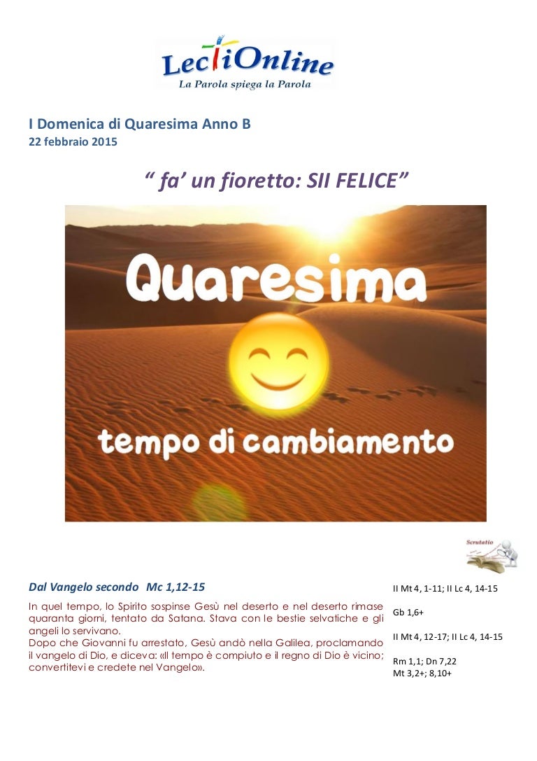 Lectionline I Domenica Di Quaresima Anno B 1