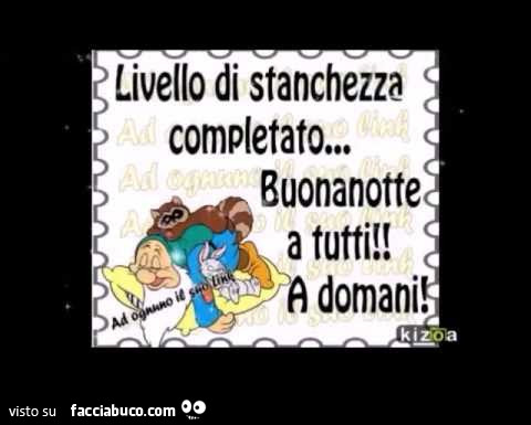 Livello Di Stanchezza Completato Buonanotte A Tutti A Domani Facciabuco Com