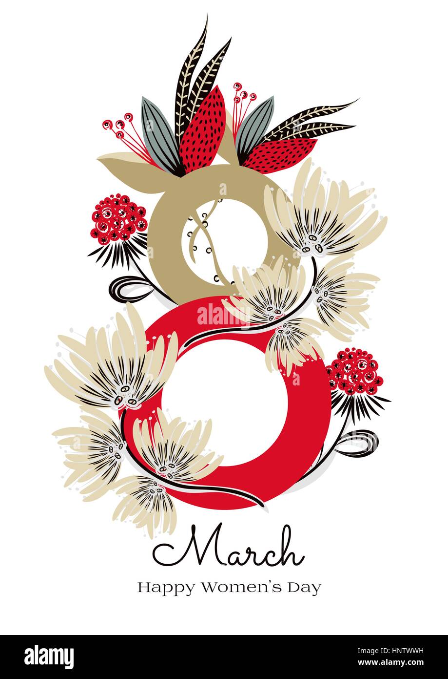 8 Marzo Buon Giorno Della Donna La Figura Otto Fiori Intrecciate Vacanze Di Primavera Carte Di Progettazione Con Disegnati A Mano Ornamenti Floreali Immagine E Vettoriale Alamy