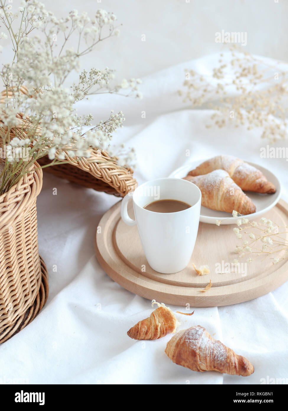 Breakfast Table With A Cup Of Coffee And Croissants Light And Bright Mood Stock Photo Alamy