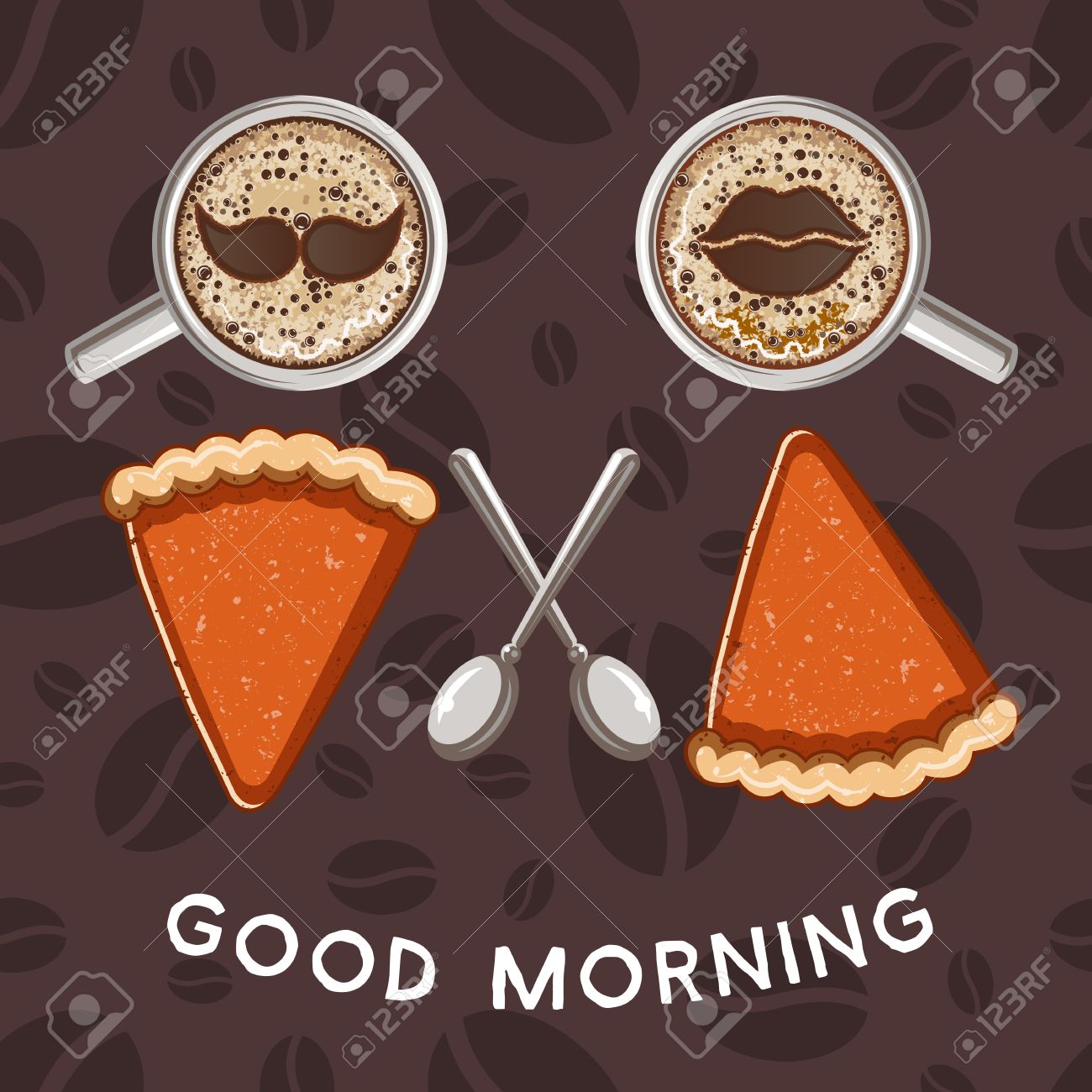 Vettoriale Piatta Illustrazione Vettoriale Buongiorno Pezzo Di Torta E Una Tazza Di Caffe In Forma Di Uomini E Donne Con Un Caffe Di Sfondo Image 48517944