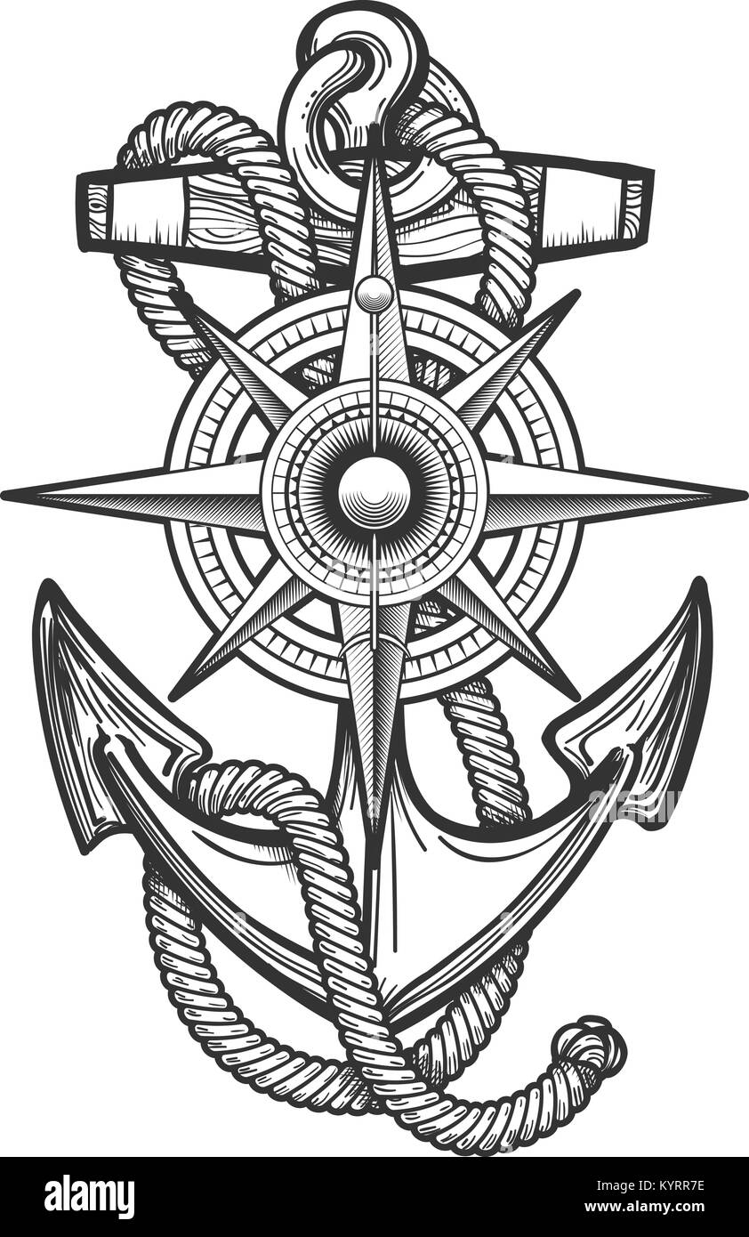 Ancoraggio Con Funi E Nautico Bussola Vintage Disegnato In Stile Di Incisione Illustrazione Vettoriale Immagine E Vettoriale Alamy