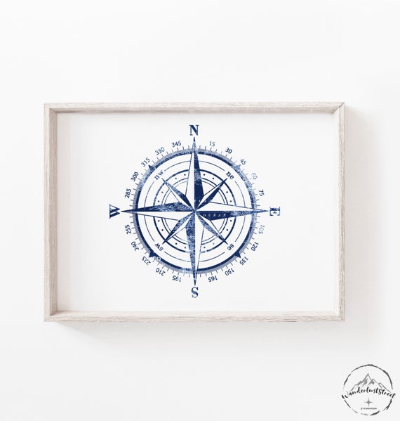 Stampa Della Bussola Blu Della Marina Viaggi Ommatico Wallry Etsy