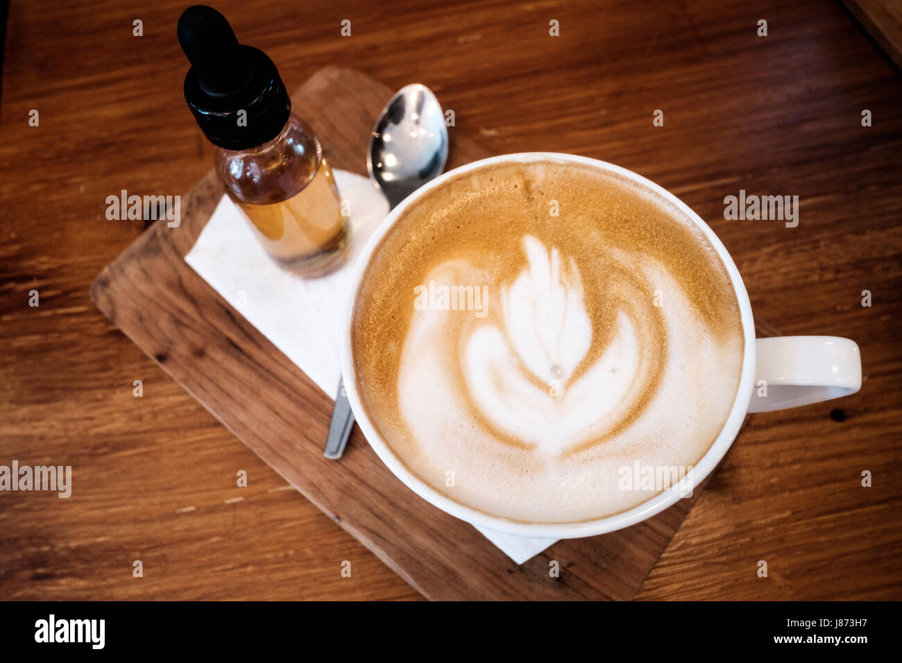 A Cup Of Coffee Decorate By Beautiful Latte Art On Top Placed On Wood Stock Photo Alamy
