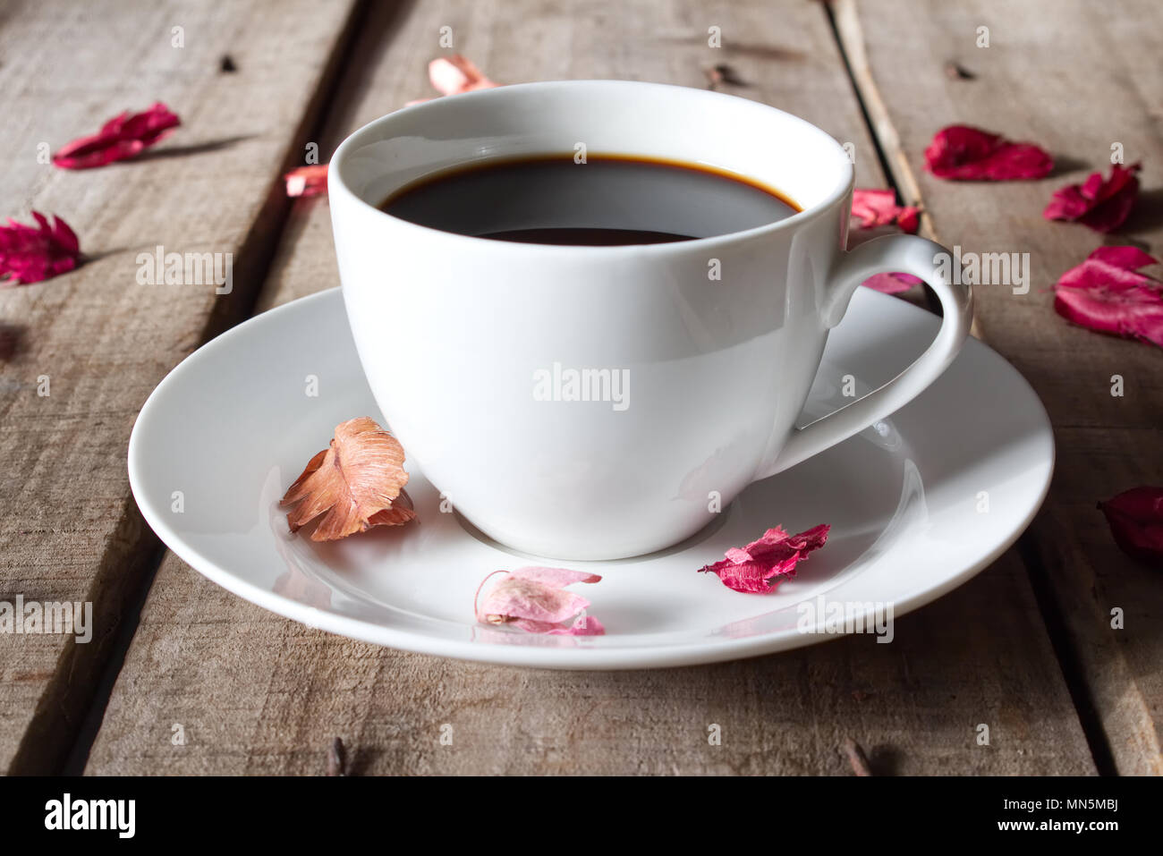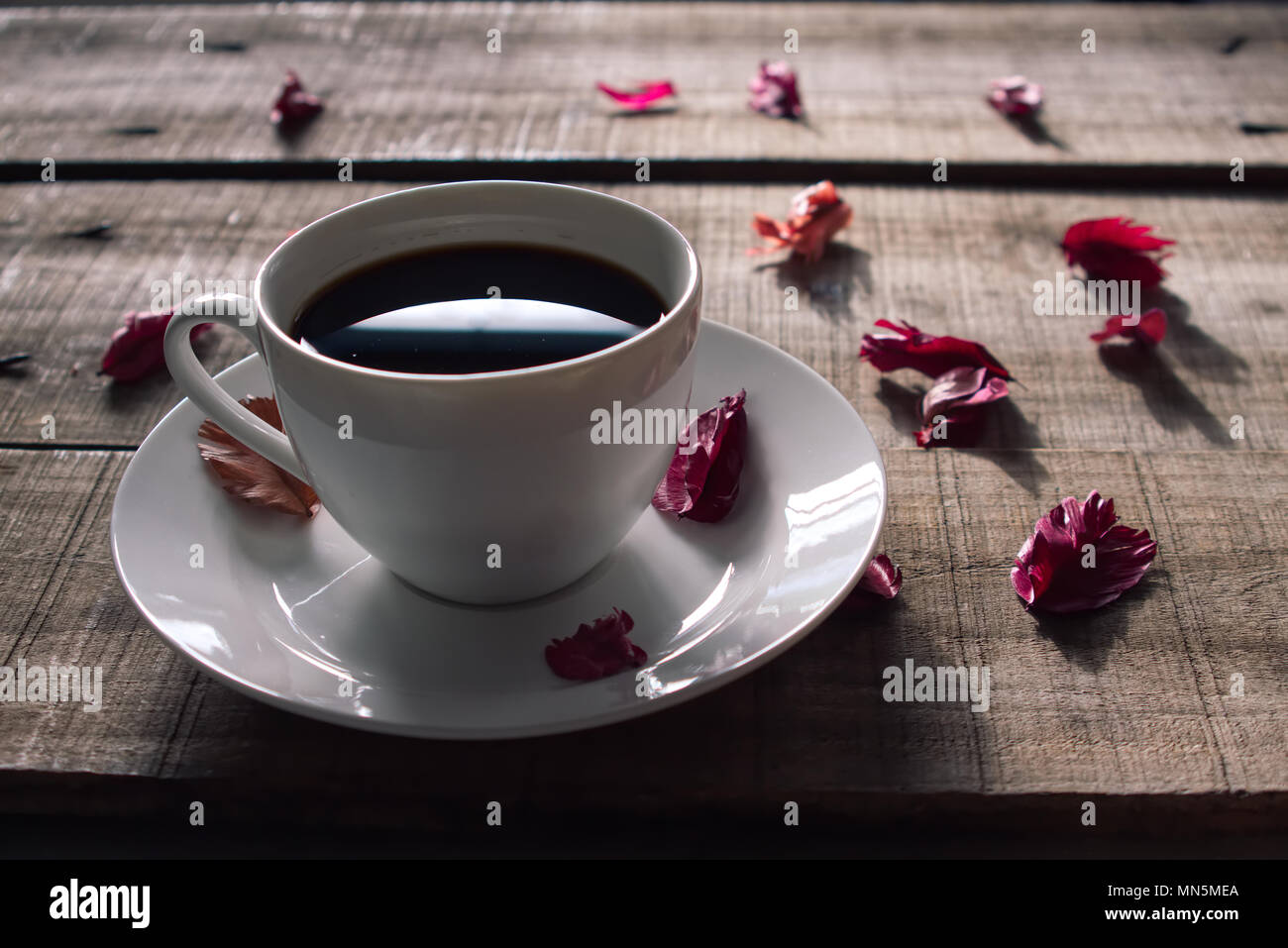 White Coffee Cup Decorate With Red Dry Rose On Wood Plate Vintage Concept Stock Photo Alamy