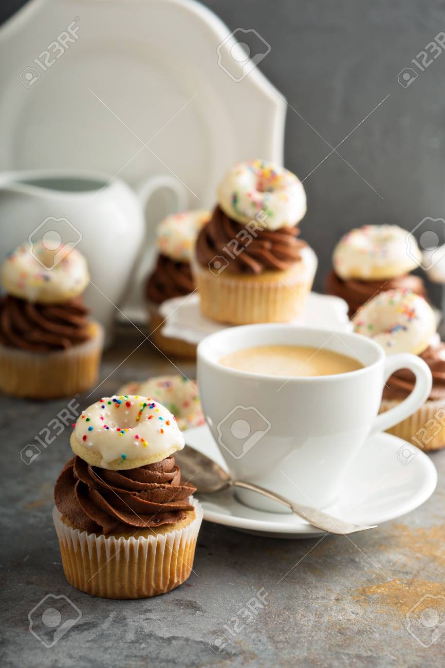Immagini Stock Bigne Di Caffe E Crema Decorati Con Ciambelle Image 81600012