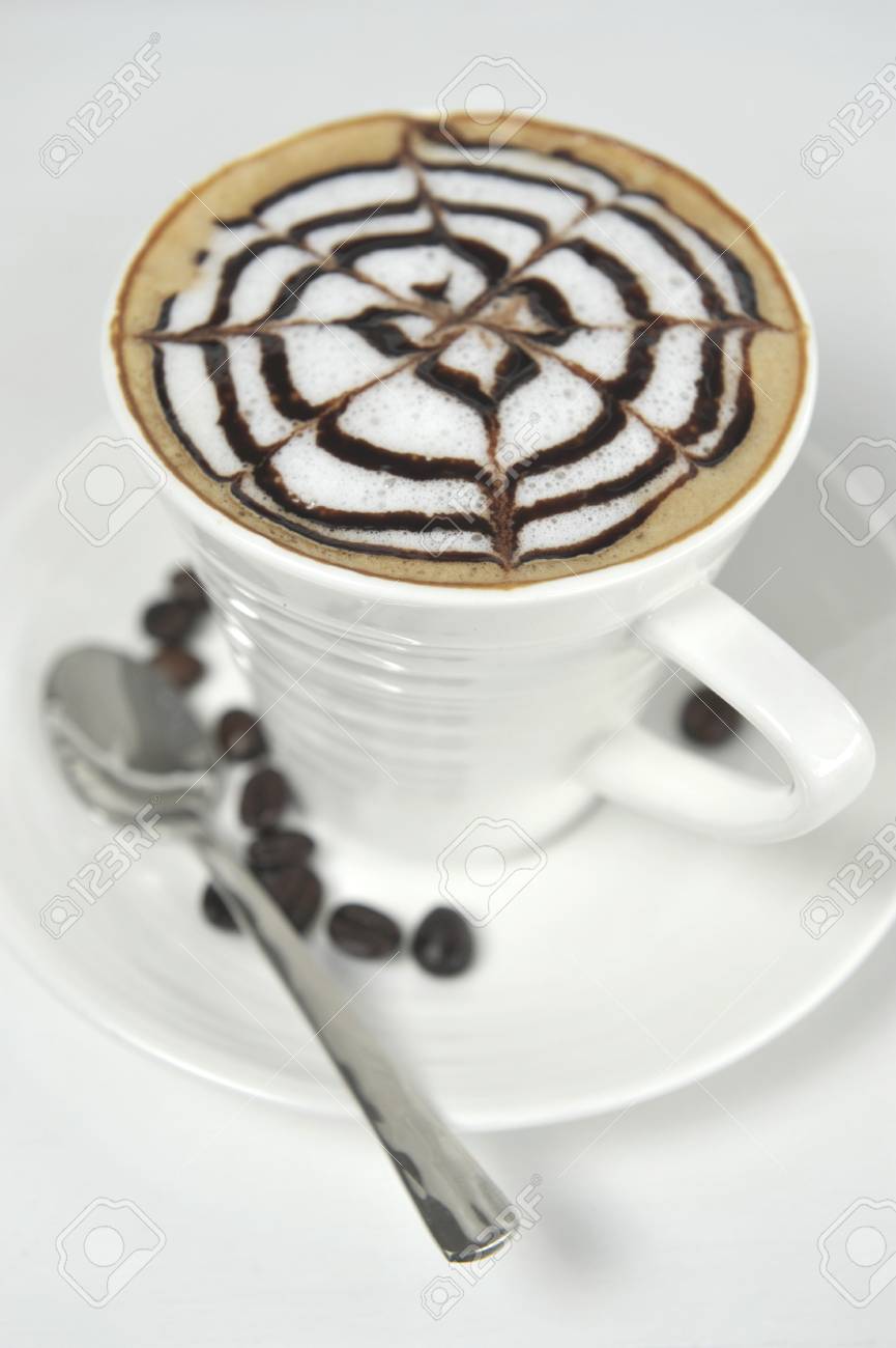 Immagini Stock Grande Tazza Di Caffe Decorato Con Schiuma Di Latte E Il Disegno Di Cioccolato Image 17692890