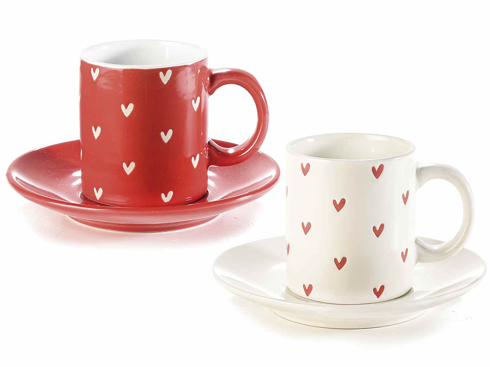 Tazzina Da Caffe In Ceramica Con Cuori Decorati E Piattino 71 41 29 Art From Italy