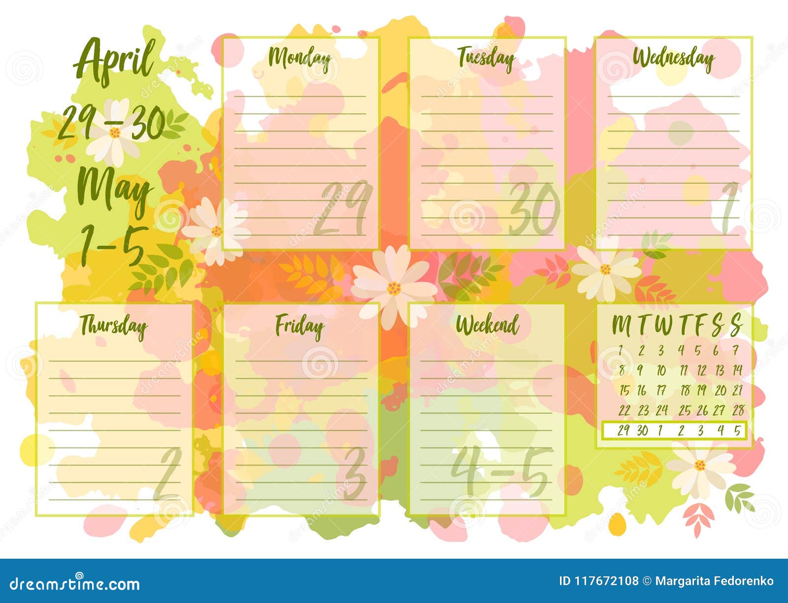 Aprile 2019 Pianificatore Settimanale Illustrazione Vettoriale Illustrazione Di Settimanale 2019 117672108