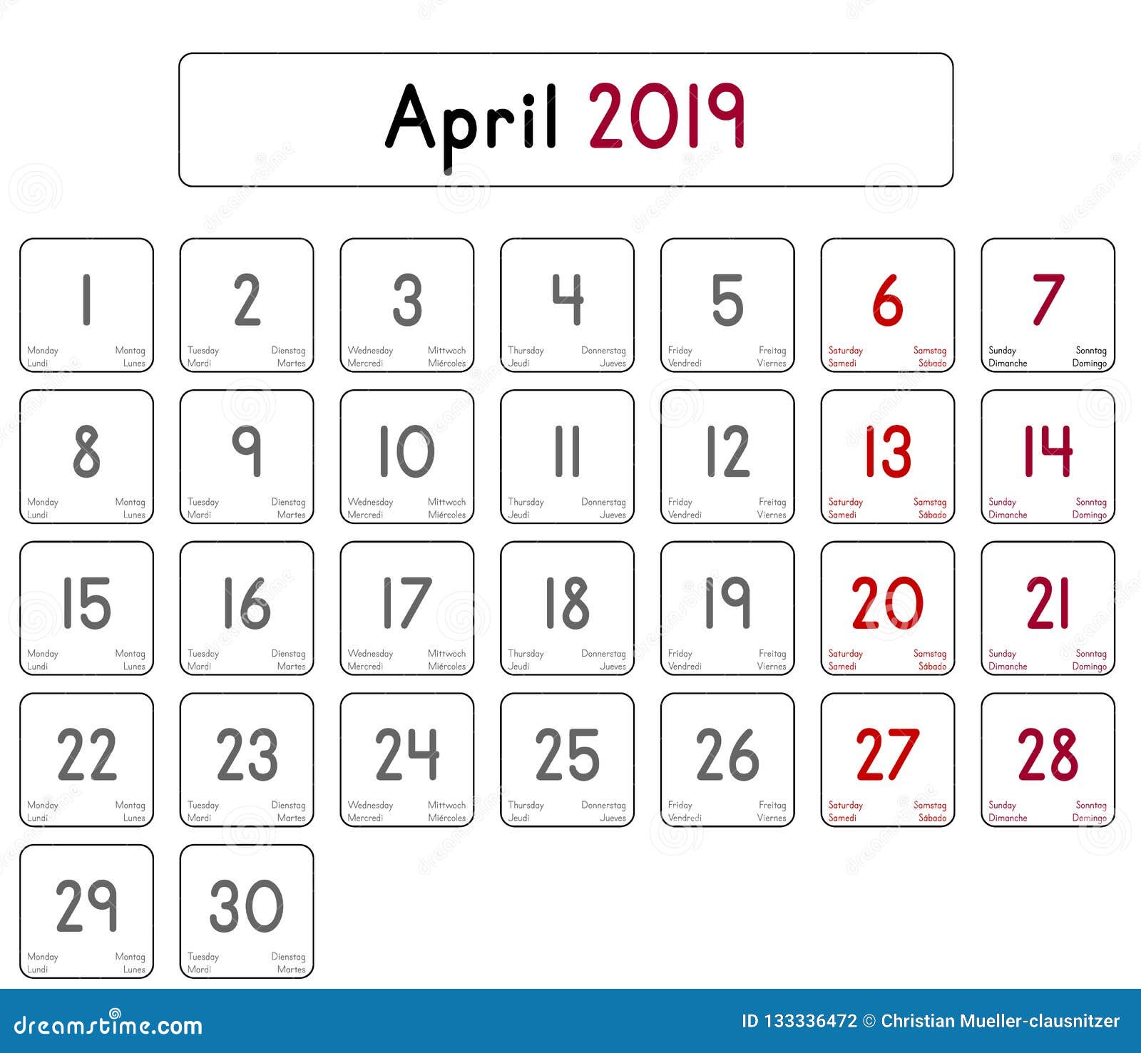 Immagini Stock Il Calendario Originale Per Aprile 2019 L Inizio Della Settimana Lunedi Image 96273672