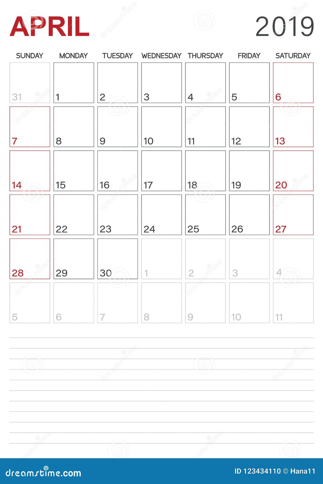 Orario Pianificatore Inizio Domenica Calendario 2019 Aprile Settimane Organizzatore Orario Pianificatore Canstock