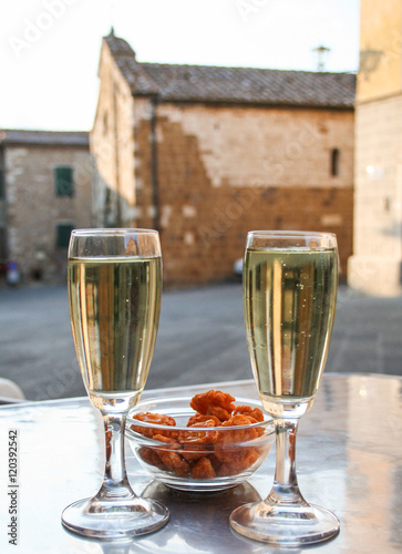 Due Calici Di Prosecco Sullo Sfondo Di Una Piazza Toscana Buy This Stock Photo And Explore Similar Images At Adobe Stock Adobe Stock