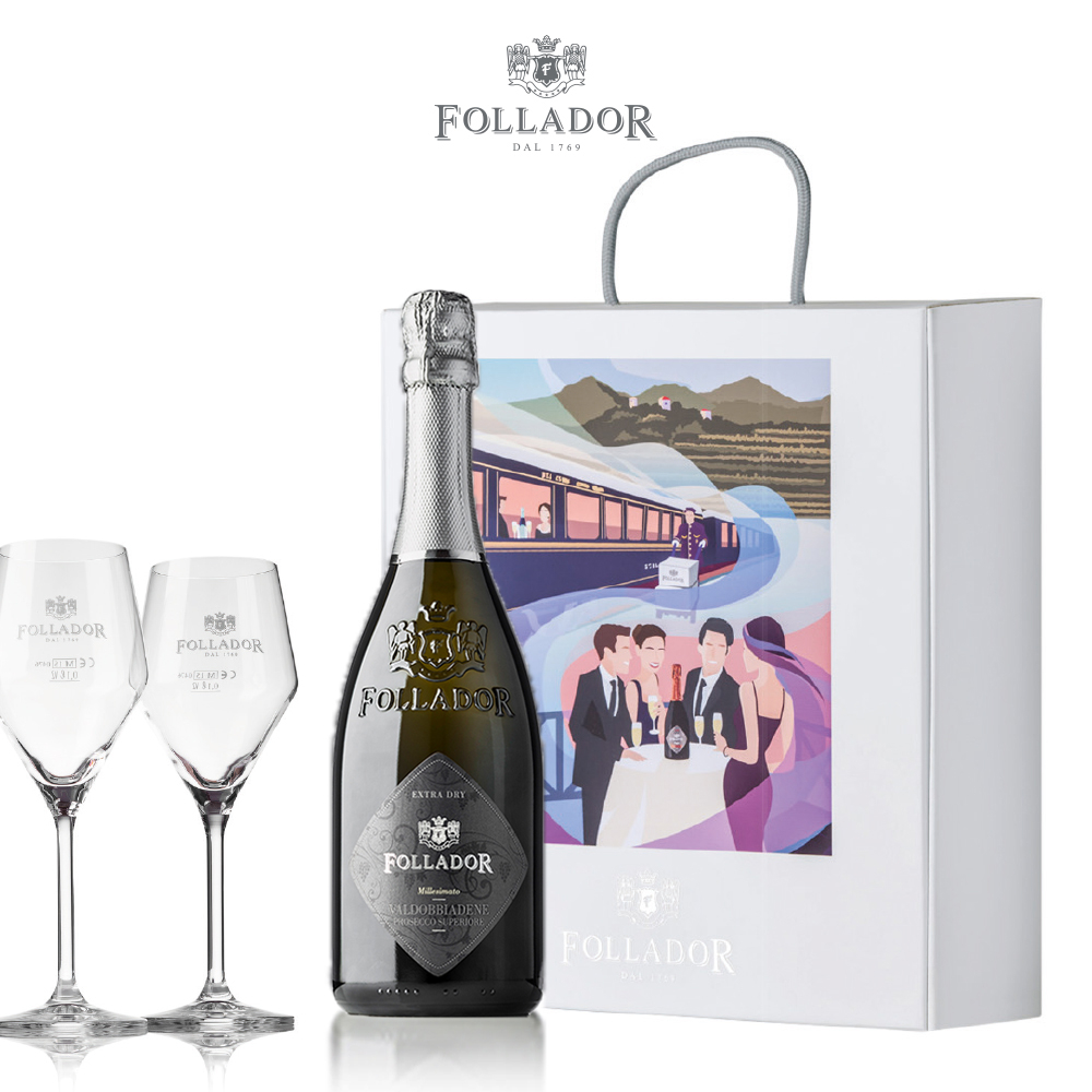 Confezione Regalo Prosecco Superiore D O C G Extra Dry Con 2 Calici
