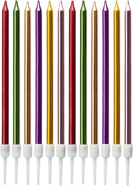 Luter Metallico Candeline Torta Compleanno Lunghe Con Il Titolare Multicolore Candele Per La Decorazione Della Festa Nuziale Di Compleanno 24 Pezzi Amazon It Giochi E Giocattoli