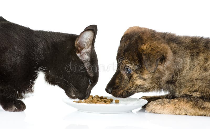 Gatto E Cane Che Mangiano Insieme Foto Foto Stock Gratis E Royalty Free Da Dreamstime