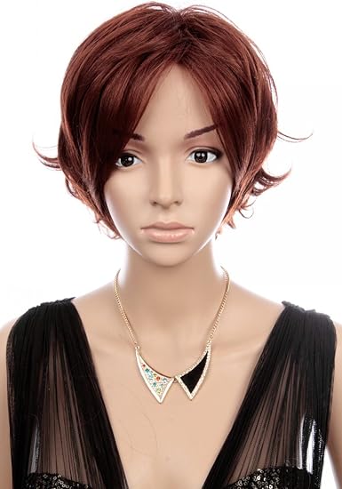 Prettyland C464 Parrucca Capelli Corti Sfilati Spettinati Taglio Retro Taglio Bob Scalato Color Rosso Castano Frangia Lunga Riga Centrale Amazon It Bellezza