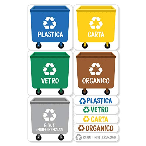 6 Pz Readyprint Adesivi Per Raccolta Differenziata Con Disegni 9 Cm Italiano Inglese Etichette Riciclo Rifiuti Mis Casa E Cucina Contenitori E Secchi Per Rifiuti E Riciclaggio