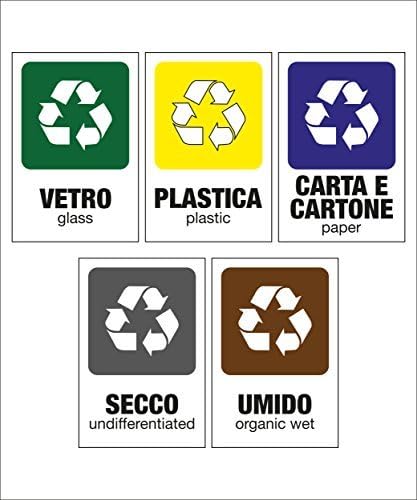 Kamiustore Pack Di 5 Cartelli Adesivi 13 5 X 20 Cm Raccolta Differenziata Per Rifiuti Carta Secco Umido Vetro Plastica Amazon It Casa E Cucina