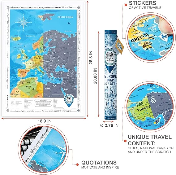 Cancelleria E Prodotti Per Ufficio Mappa Dell Europa Da Grattare Dettagliata Cartina Europa Da Grattare Grande Argento 48 X 68 Cm Con Adesivi Scratch Off Travel Map Europe Poster Mappa Viaggi Regalo