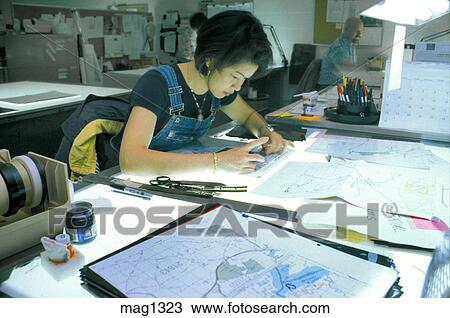 Cartografo Donna Asiatica Lavorando Mappa Strada Archivio Immagini Mag1323 Fotosearch