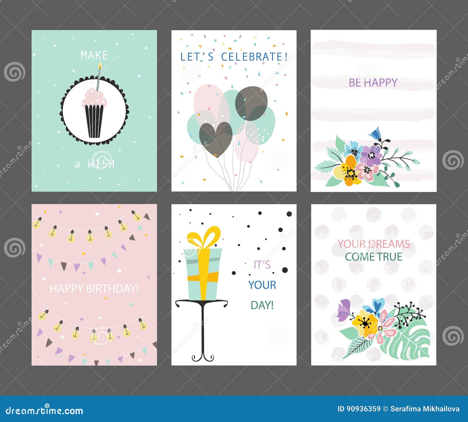 Cartoline D Auguri Di Buon Compleanno Impostate Illustrazione Vettoriale Illustrazione Di Puntino Bandierina 90936359