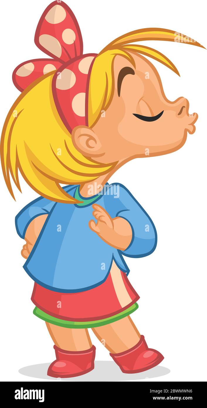 Carino Bambina Bionda Con Un Nastro Che Manda Un Bacio Illustrazione Di Cartoni Animati Vettoriali Immagine E Vettoriale Alamy