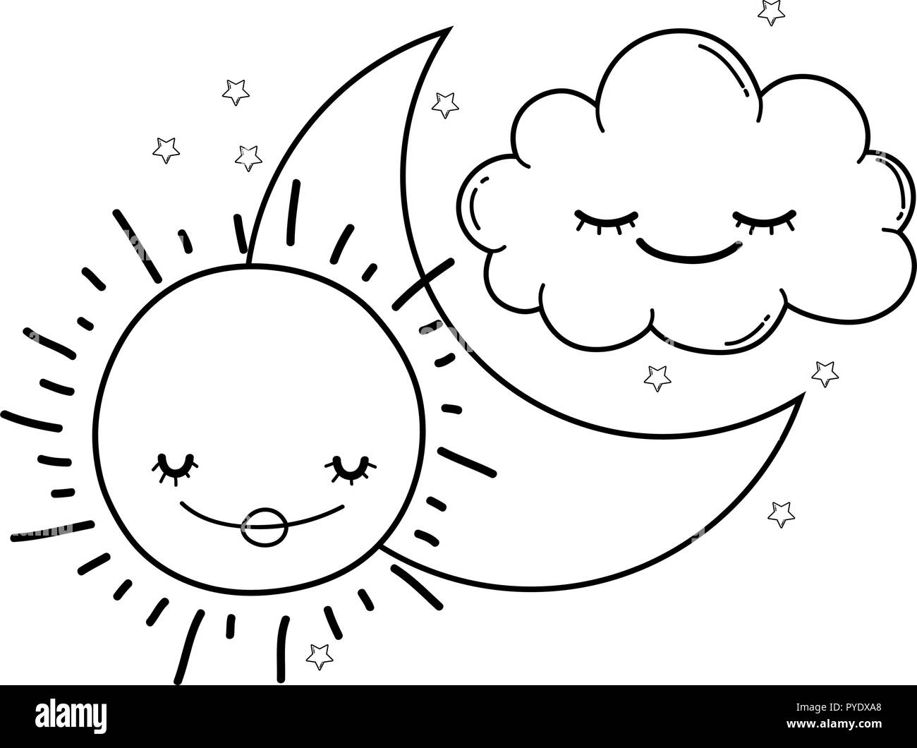 Nuvole E Stelle Carino Cartoni Animati In Bianco E Nero Immagine E Vettoriale Alamy