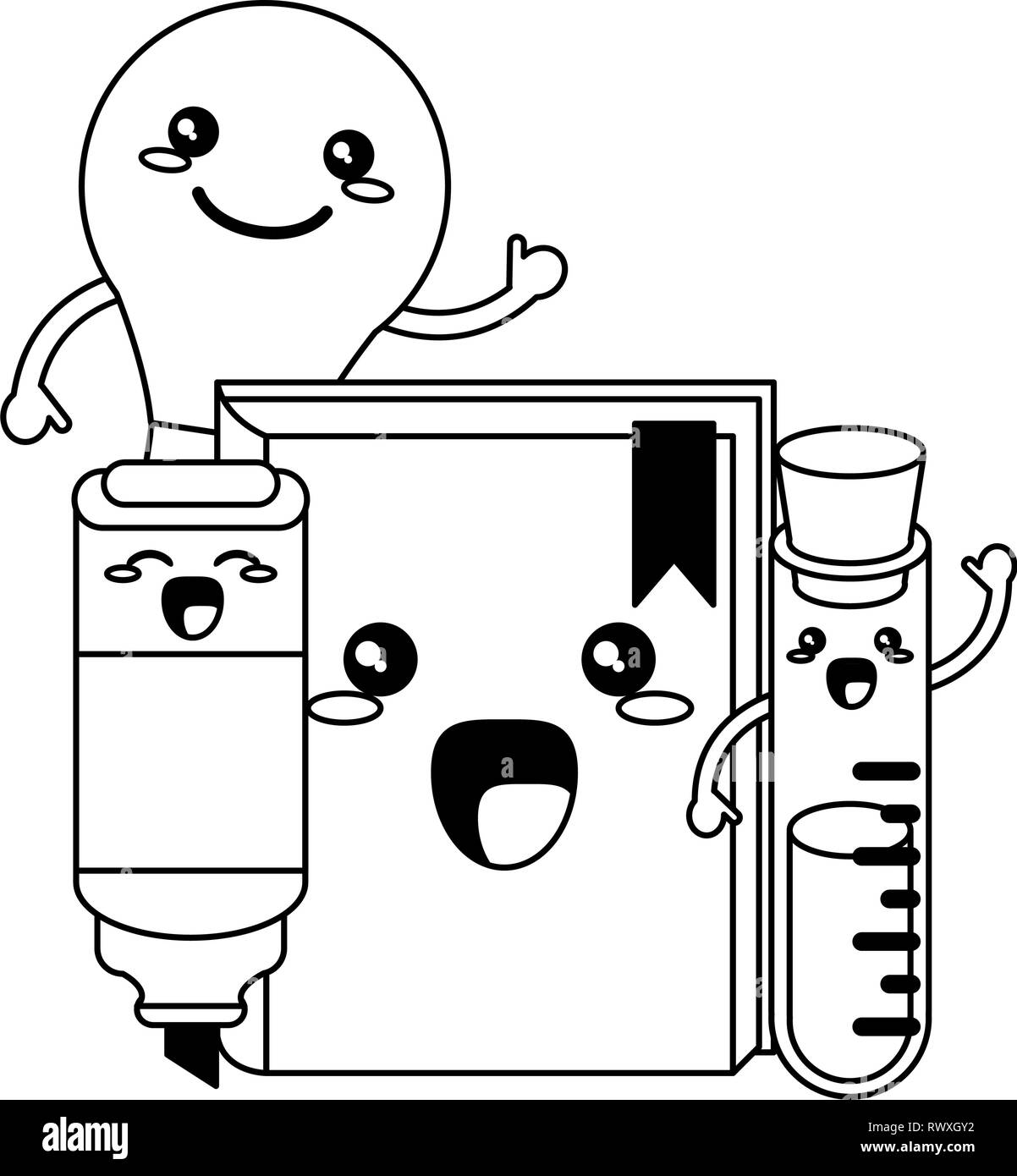 Utensili Di Scuola Kawaii Cartoni Animati In Bianco E Nero Immagine E Vettoriale Alamy