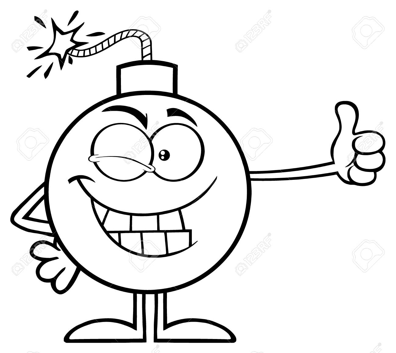 Immagini Stock Personaggio Mascotte Dei Cartoni Animati Di Bomba Strizzatina D Occhio In Bianco E Nero Che Da Un Pollice Illustrazione Isolato Su Sfondo Bianco Image 74699070