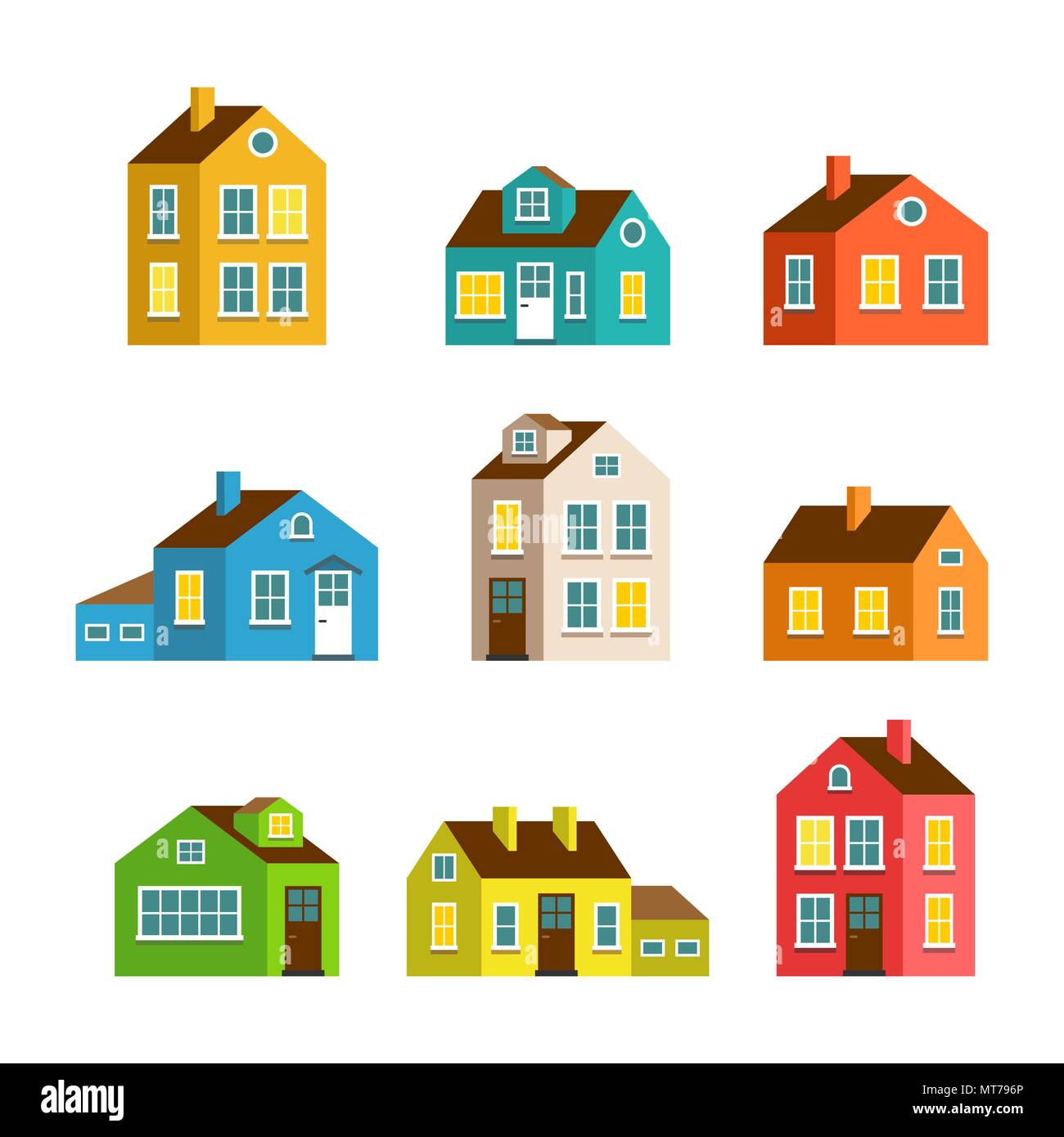 Set Di Colorate Case Di Cartoni Animati Su Sfondo Bianco Immagine E Vettoriale Alamy